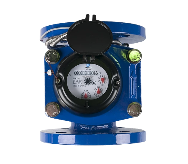 Принцип действия турбинных счетчиков основан на измерении числа оборотов турбинки, вращающейся со скоростью, пропорциональной расходу воды, протекающей в трубопроводе. Ось вращения турбинки, в отличии от оси крыльчатки в крыльчатых счетчиках, расположена не перпендикулярно, а параллельно потоку воды. Вращение турбинки через червячный вал и магнитную муфту передается счетному механизму, по показаниям которого определяют количество воды, прошедшей через счетчик.