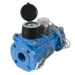 Комбинированные счетчики разработаны специально для объектов с широким диапазоном расхода воды, непостоянным уровнем расхода, варьирующимся в течение суток, сезонов или условий технологического процесса, объектов кратковременного учета большого расхода, где при нормальной ситуации протекает небольшое количество воды. Составные элементы комбинированного счетчика воды представлены на рисунке 12. Конструктивно в устройстве расположены два счетчика и переключающее устройство — пружинный перепускной клапан, который в зависимости от величины расхода направляет поток при малых значениях расхода через вспомогательный счетчик, а при больших через основной и вспомогательный счетчики: основным является турбинный счетчик для больших расходов, крыльчатый счетчик для малых расходов вспомогательный. За счет этого достигается возможность точного измерения на объектах с широким диапазоном как на малых, так и на больших расходах воды. Основной и вспомогательный счетчики могут быть расположены в одном корпусе (например, комбинированный счетчик воды ООО «Декаст» СТВК 1) либо располагаться в отдельных корпусах (например, комбинированный счетчик воды ООО «Декаст» СТВК 2).