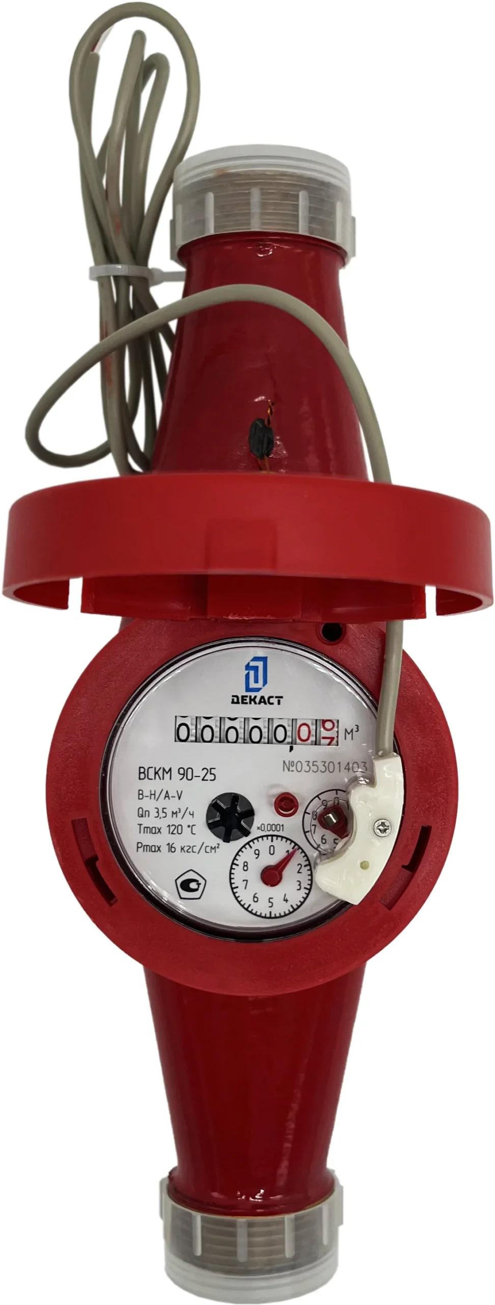 Счетчик ДУ 25 ВСКМ 90-25 ДГ2 крыльчатый многоструйный для измерений объёмов как холодной, так и горячей воды с импульсным выходом. Надёжный и стойкий к гидроударам.